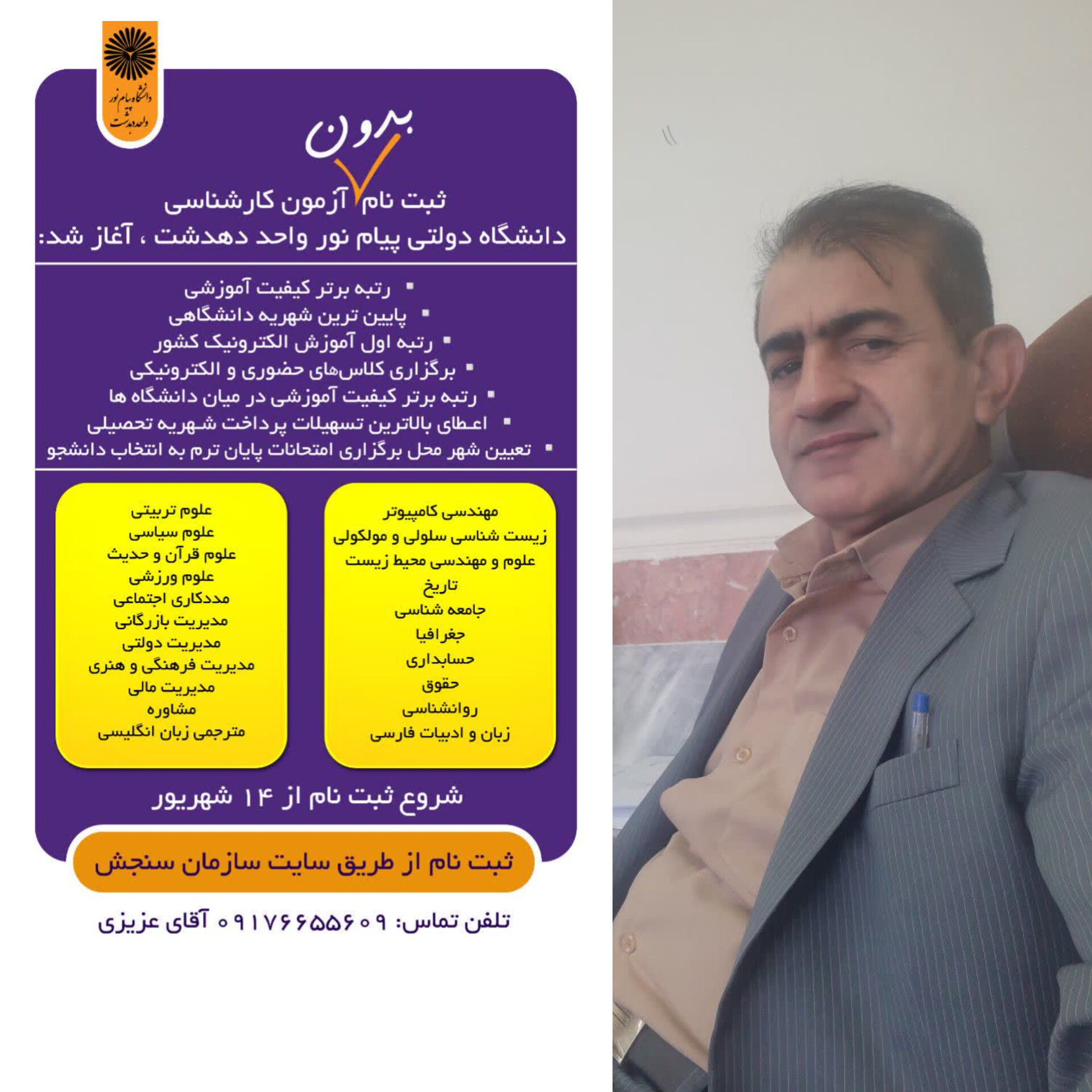دانشگاه پیام نور واحد دهدشت در مقطع کارشناسی از طریق سوابق تحصیلی(بدون آزمون ) برای سال تحصیلی ۴۰۴-۴۰۳ دانشجو می پذیرد .