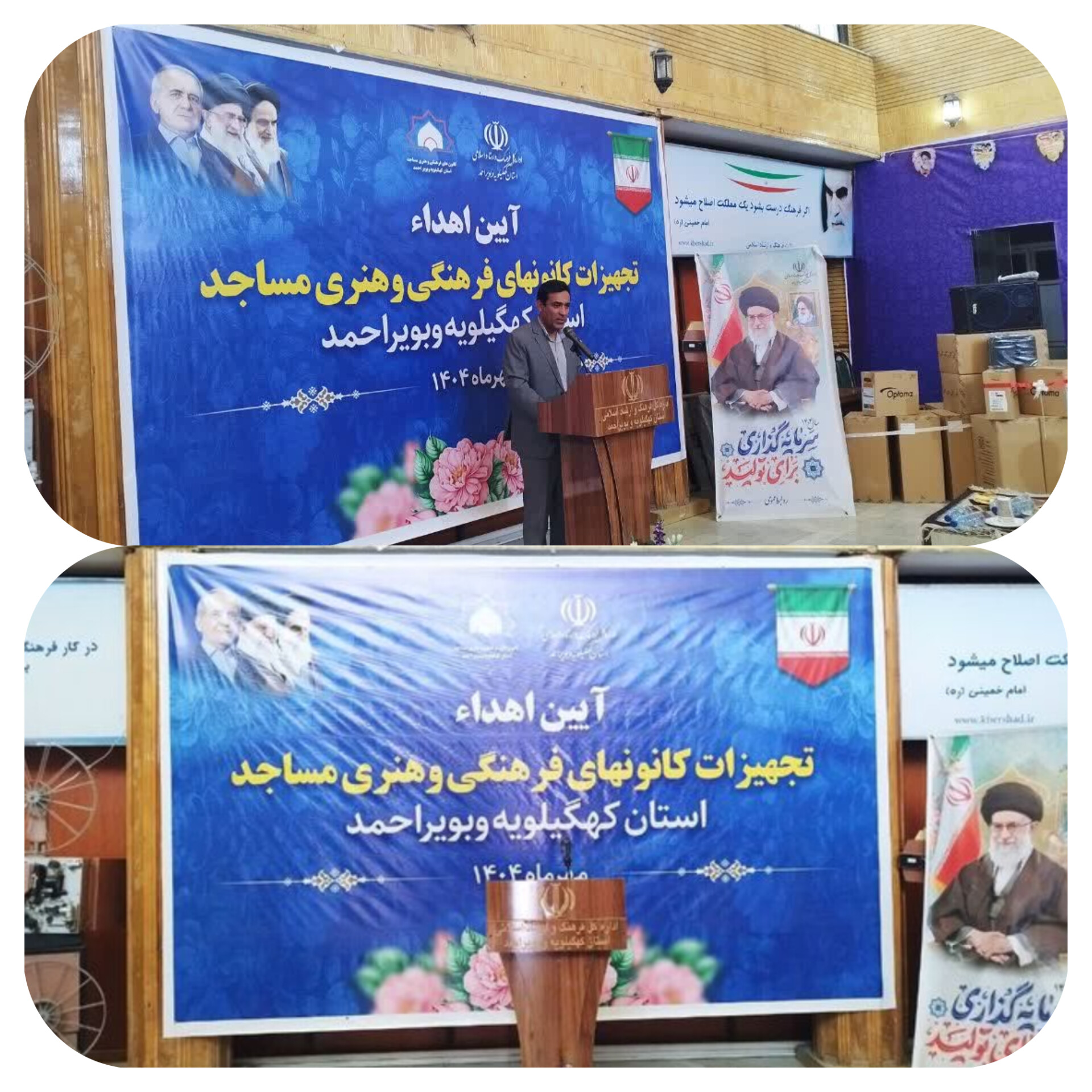 به گزارش راک نیوز؛آیین اهدای تجهیزات به کانونهای فرهنگی و هنری مساجد استان کهگیلویه و بویراحمد عصر امروز با حضور استاندار، مدیرکل فرهنگ و ارشاد اسلامی، رئیس شورای سیاست گذاری ائمه جمعه استان، روسای فرهنگ و ارشاد اسلامی و جمعی از مدیران کانونهای فرهنگی و هنری مساجد در یاسوج برگزار شد.
