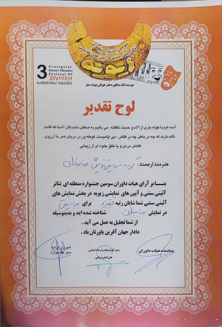 سومین جشنواره منطقه‌ای تئاتر آیینی سنتی و آیین‌های نمایشی «زیویه» در شهرستان سقز با معرفی برگزیدگان خود به کار پایان داد.