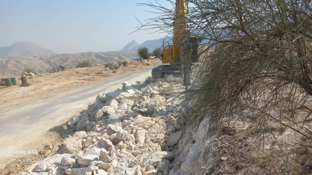 دیوار حائل:به ارتفاع ۲ متر و به طول ۱۵۵ متر