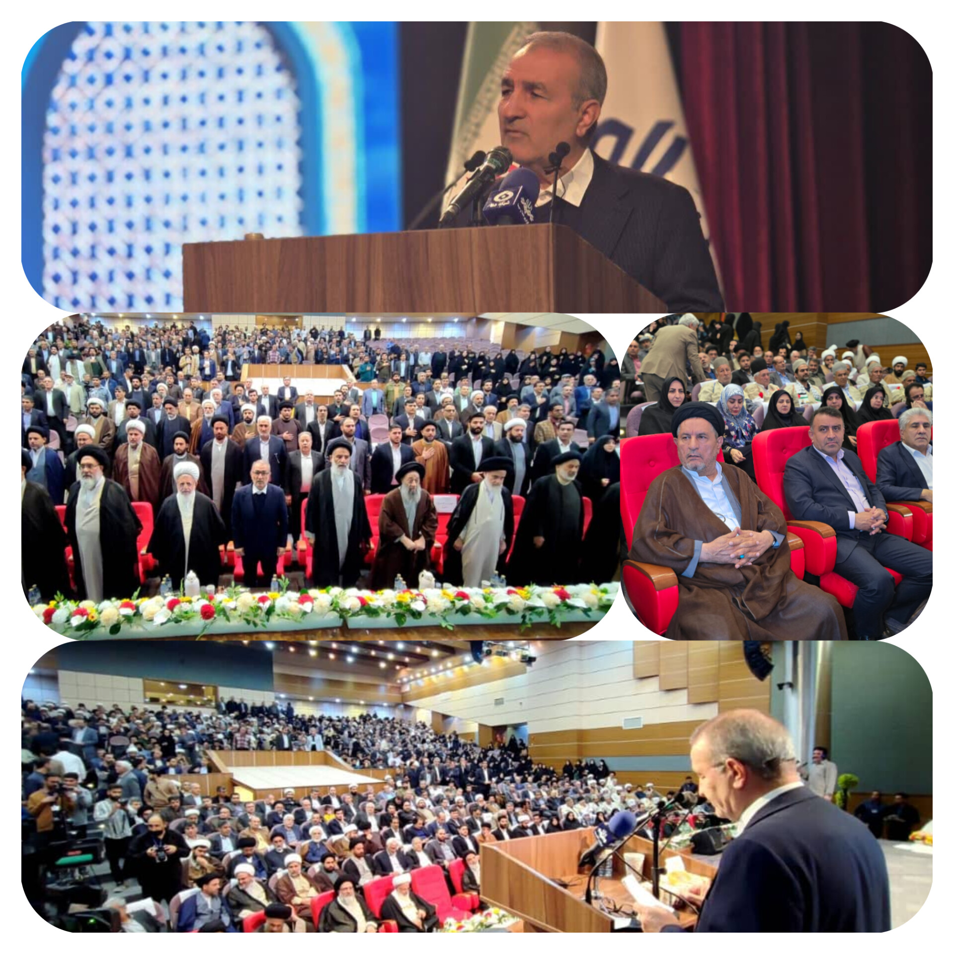 وی خاطرنشان کرد: صمیمانه از همه شخصیتهای حوزوی، علمی، اداری و مدیریتی، اندیشمندان، مسئولین، مدیران و میهمانان گرانقدر که از سراسر ایران عزیز در این آیین حضور یافتهاند، تشکر میکنم و همچنین از کلیه برگزار کنندگان اعم از شورای سیاستگذاری، کمیتههای علمی، اجرایی، مالی، پشتیبانی، تبلیغاتی و محققینی که با ارائه مقالات علمی، غنای این رویداد را موجب شدند، صمیمانه سپاسگزارم که برگزاری باشکوه این گردهمایی، ماحصل تلاشهای این بزرگواران است.