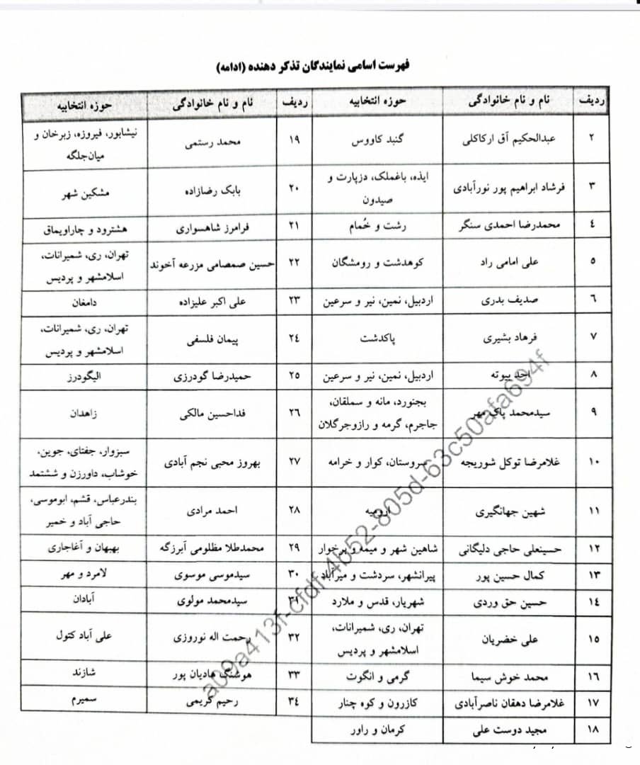 این تذکر به امضای ۳۴ نماینده دیگر مجلس شورای اسلامی نیز رسیده است.