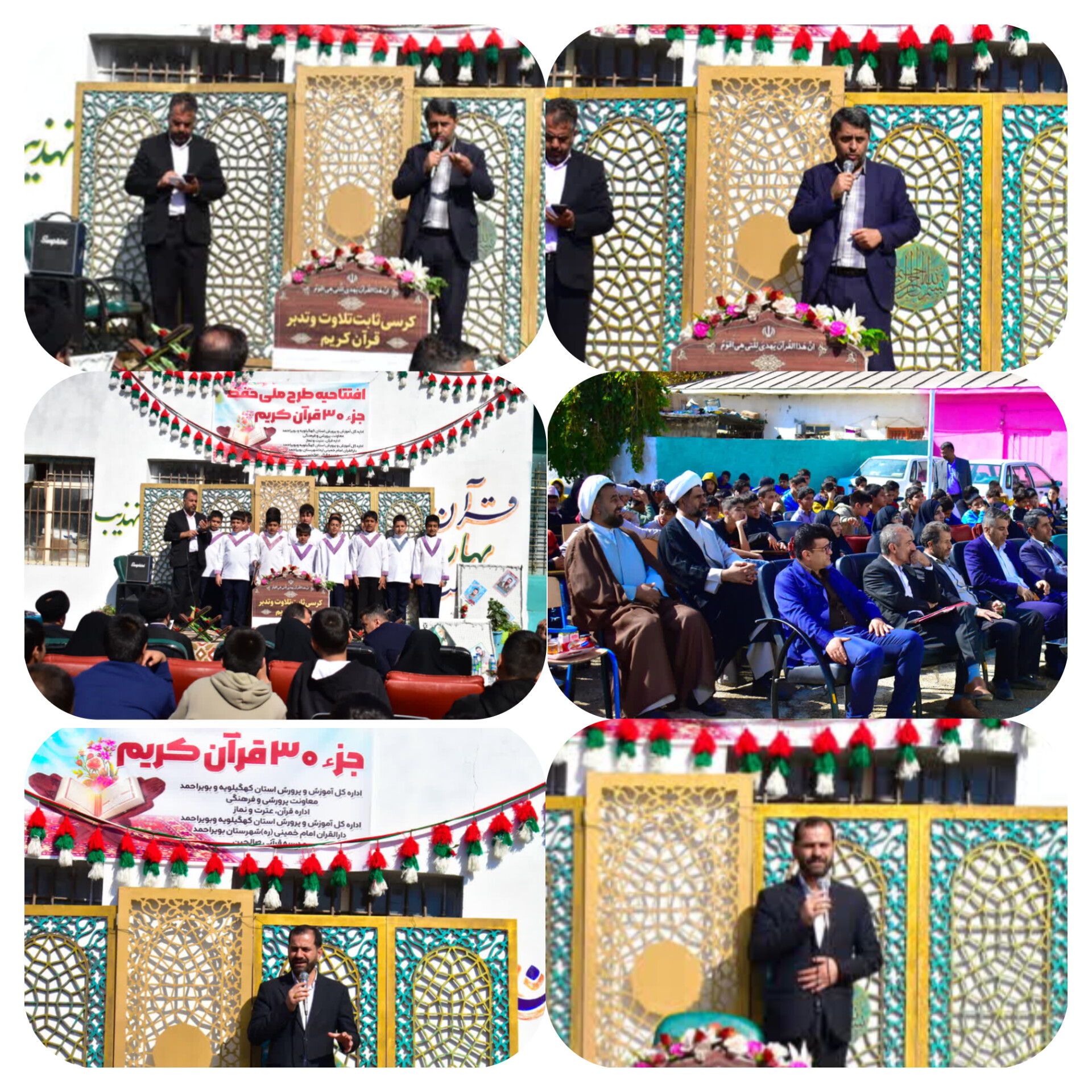 به گزارش راک نیوز به نقل از اداره اطلاعرسانی و روابط عمومی آموزش و پرورش استان کهگیلویه و بویراحمد، حجت دبیقی در افتتاحیه جزء ۳۰ قرآن کریم با قدردانی از عوامل اجرایی این برنامه گفت: امسال ۵ برنامه محوری در حوزه قرآن، عترت و نماز در سطح استان دنبال میشود که یکی از مهمترین آنها طرح ملی حفظ جزء سیام قرآن کریم است.