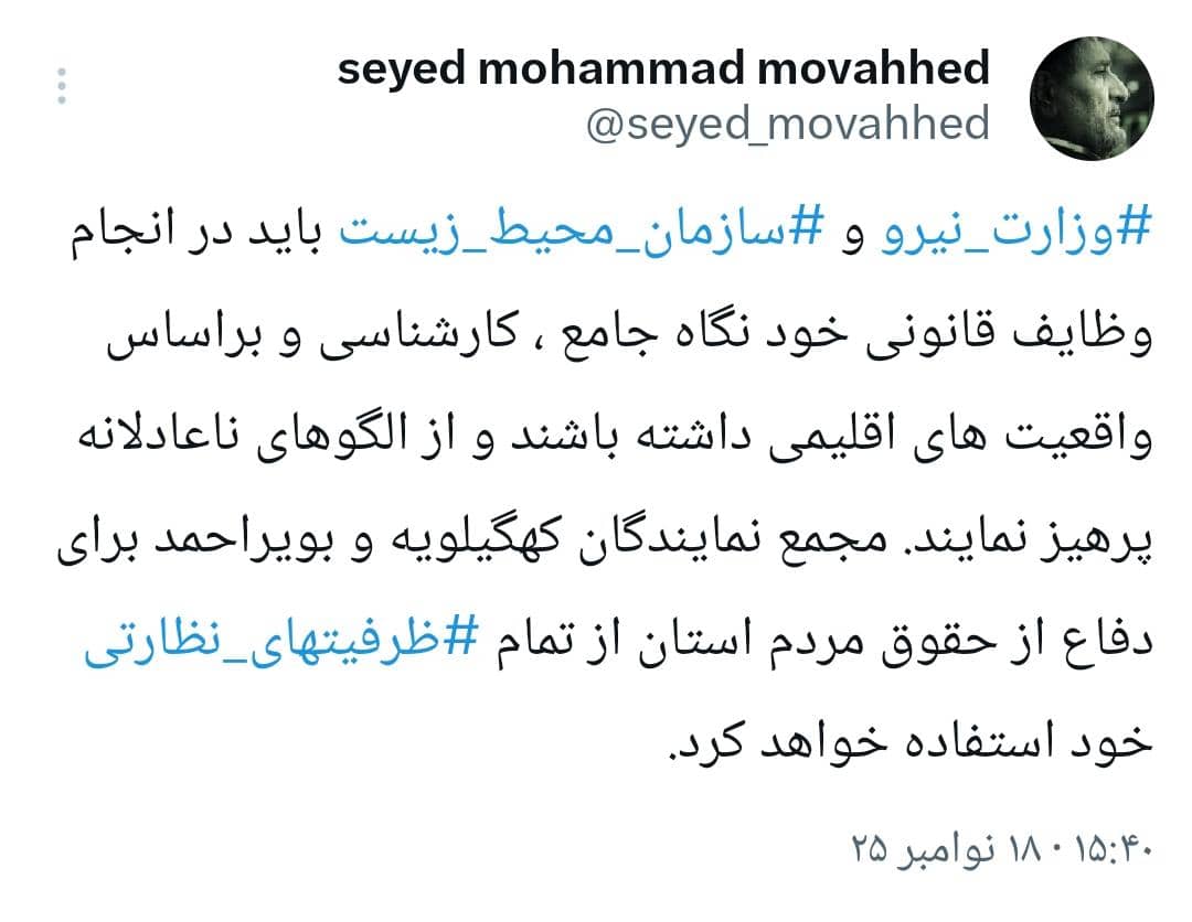 رییس مجمع نمایندگان استان‌ کهگیلویه و بویراحمد در جدید‌ترین پست تویتیری خود به ساخت سدهای ماندگان و خرسان ۳ واکنش نشان داد‌.