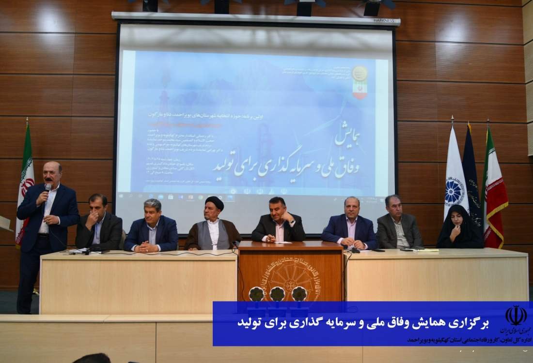 همایش «وفاق ملی و سرمایهگذاری برای تولید با حضور جمعی از مسئولان، نمایندگان مردم، فعالان اقتصادی و کارآفرینان در یاسوج برگزار شد. سخنرانان این برنامه با اشاره به ظرفیتهای گسترده استان، بر ضرورت تغییر رویکردها در حوزه سرمایهگذاری و حرکت بهسمت تولید و اشتغال پایدار تأکید کردند.