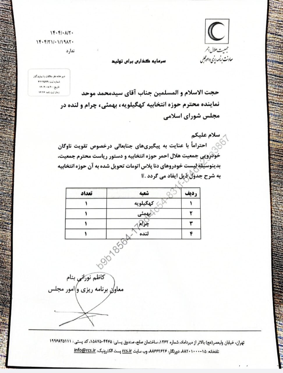موحد ادامه داد: خوشبختانه با پیگیریهای انجامشده تحویل چهار دستگاه خودروی دنا پلاس اتوماتیک به شعب جمعیت هلال احمر شهرستانهای کهگیلویه، بهمئی، چرام و لنده و یک دستگاه آمبولانس به پایگاه امدادی راک بهمنظور تقویت ناوگان خودرویی تحقق یافته که گام مؤثری در ارتقای توان امدادرسانی منطقه محسوب میشود.