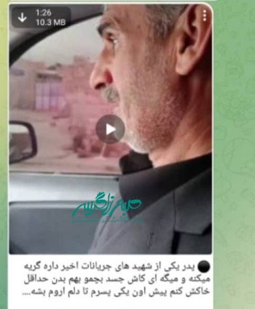 پدر محمد سالارمطلق در مسیر رفتن به محل جستجوی فرزند مفقودیاش در سیلاب اخیر است. او در کلیپ میگوید: خدایا ناشکری نمیکنم اما حالا که فرزندانم از دست رفت جسدش را به من برگردان تا بتوانم بر مزارش شیون کنم.