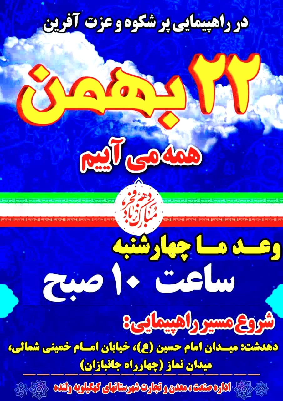• دعوت نماینده مردم شهرستان های کهگیلویه،بهمئی،چرام و لنده در مجلس شورای اسلامی برای حضور در راهپیمایی ۲۲ بهمن
