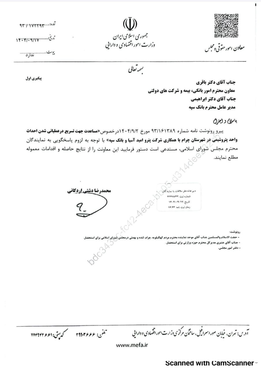 پس از بحث و بررسی و ارائه گزارشهای فنی توسط مدیران عامل بانک سپه و شرکت سرمایه گذاری پتروامید ، معاون برنامه ریزی وزارت نفت ، مدیرعامل شرکت صنایع پتروشیمی ایران و تاکید رئیس جمهور احداث پتروشیمی چرام با سرمایه گذاری شرکت پترو امید ( وابسته به بانک سپه ) مصوب گردید .