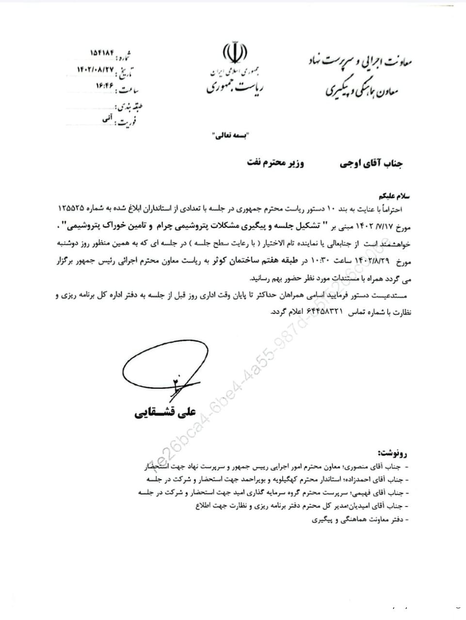 • جلسه ای مهم با محوریت تسریع در روند اجرایی پروژه بزرگ پتروشیمی دهدشت برگزار شد
